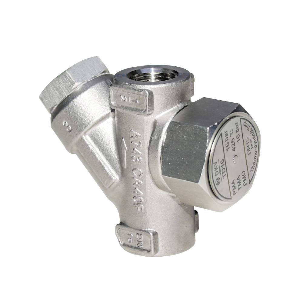 DKV TD16 thermodynamic steam trap is simple, reliableand efficient, featuring a movable stainless steel valve discthat ensures clean and airtight discharge.